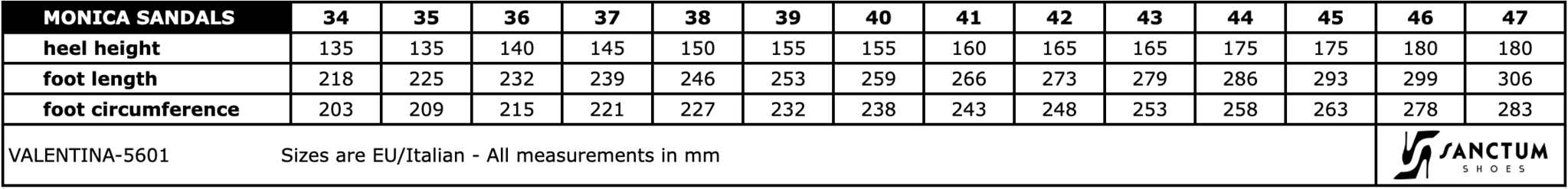 These Monica sandals from Sanctum are only for the experienced wearer, featuring a 15 cm heel height, going all the way up to 18 cm in size 47.